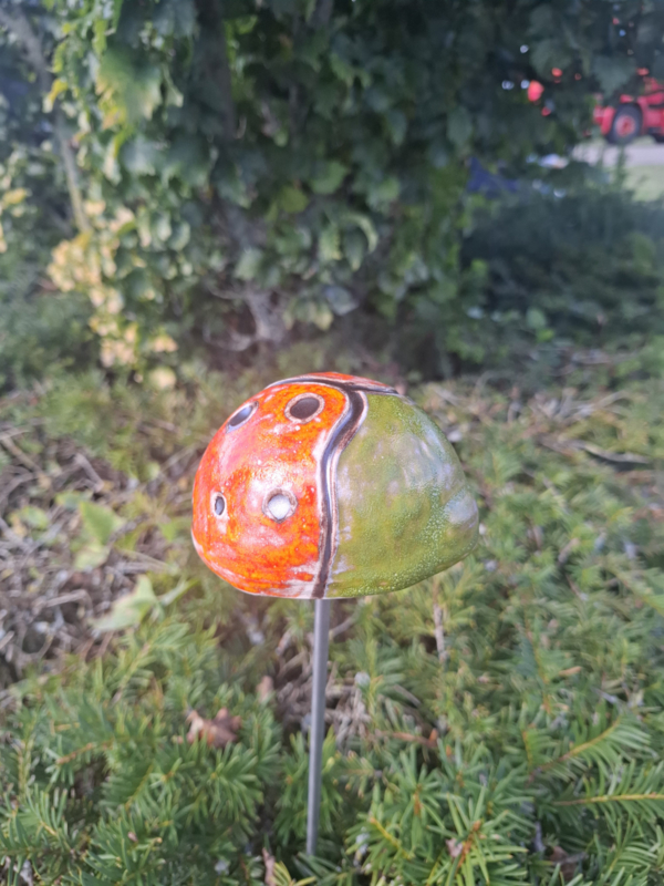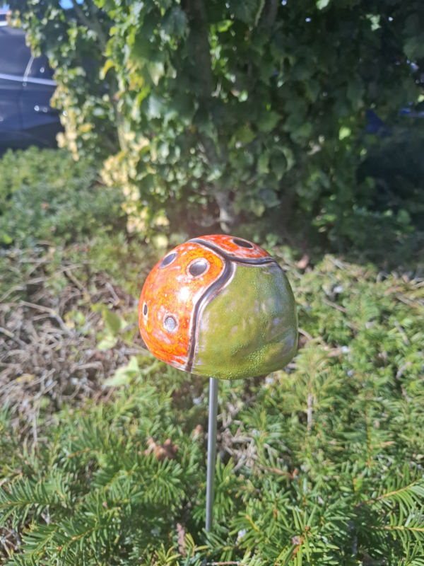 Lieveheersbeestje van keramiek handgemaakt voor in de tuin of als decoratie.