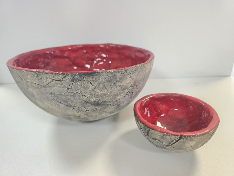Beide schalen zijn met de hand gevormd en gedecoreerd in het atelier van Bertina Tilma. Het proces zorgt voor een robuuste en authentieke uitstraling: