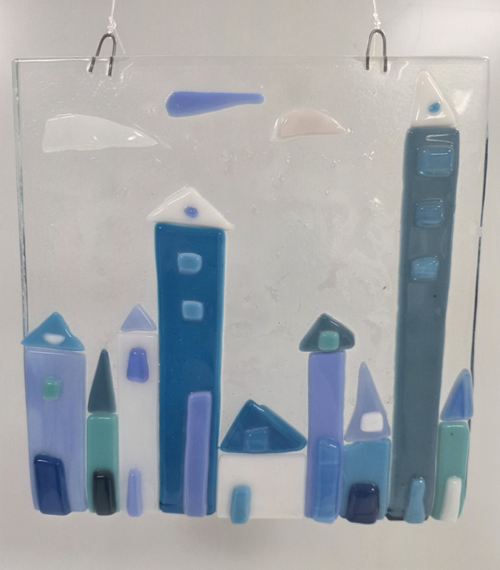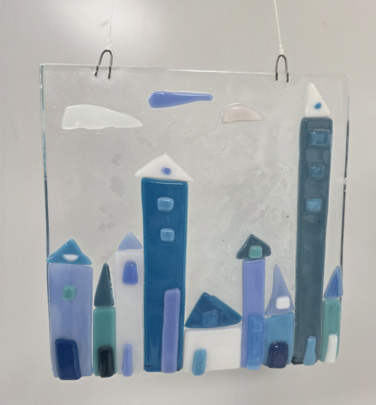 Stad blauwe huizen glashanger glasfusion