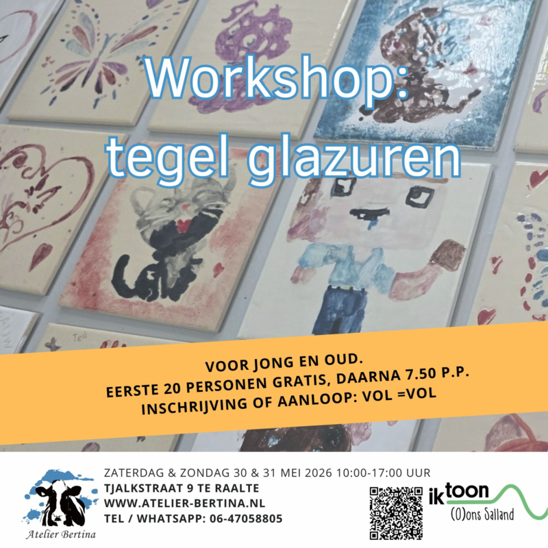Zaterdag 30 mei 2026: Festival workshop tegel glazuren Raalte