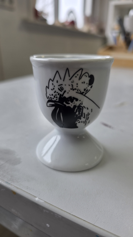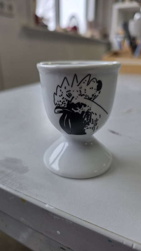 Deze eierdop is meer dan alleen een praktisch item; het is een klein kunstwerkje voor de vroege ochtend: