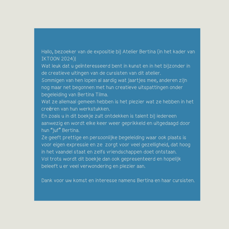 © 2010 - 2026 Atelier-Bertina | sitemap | rss | webwinkel beginnen - powered by Mijnwebwinkel